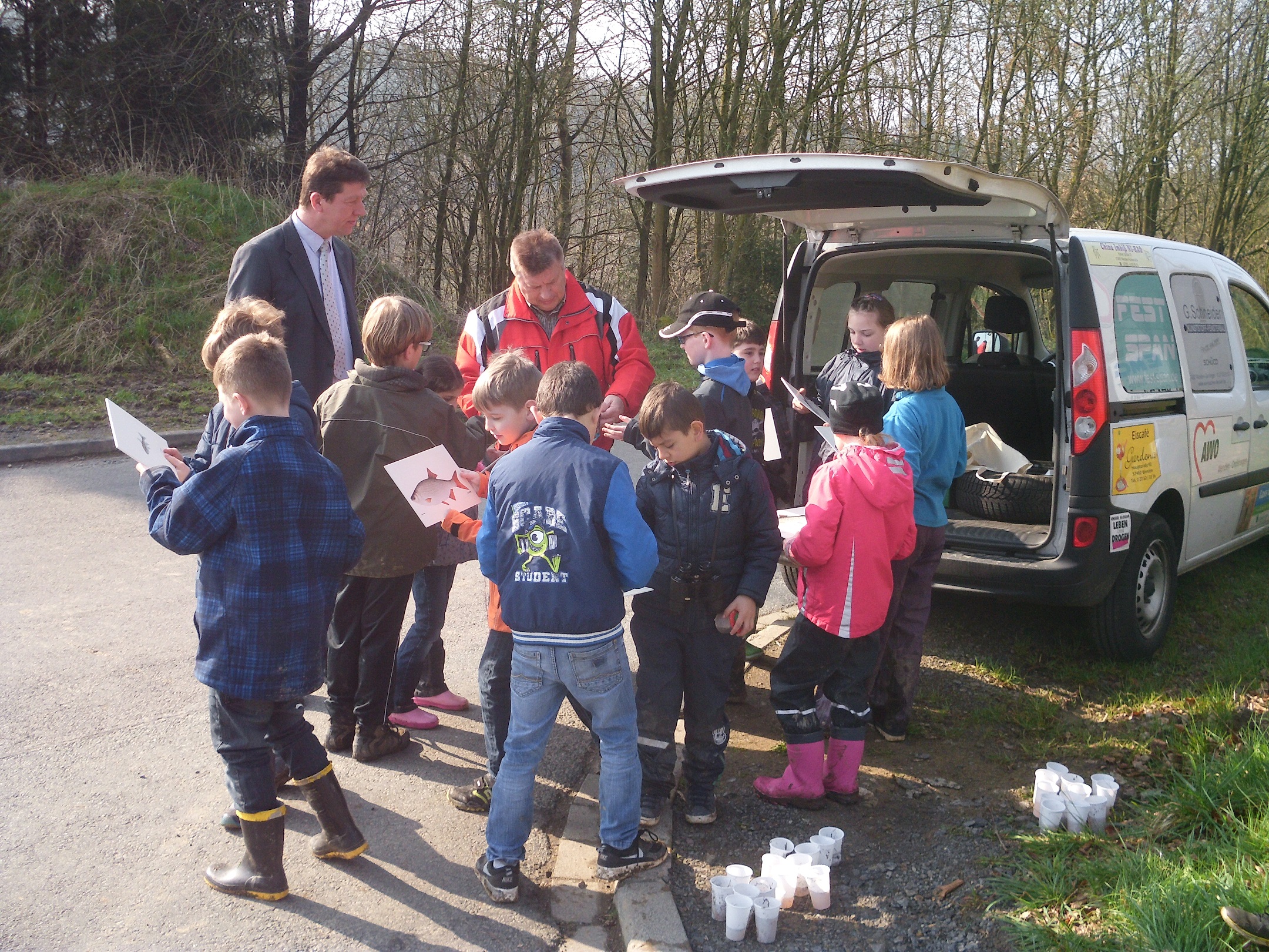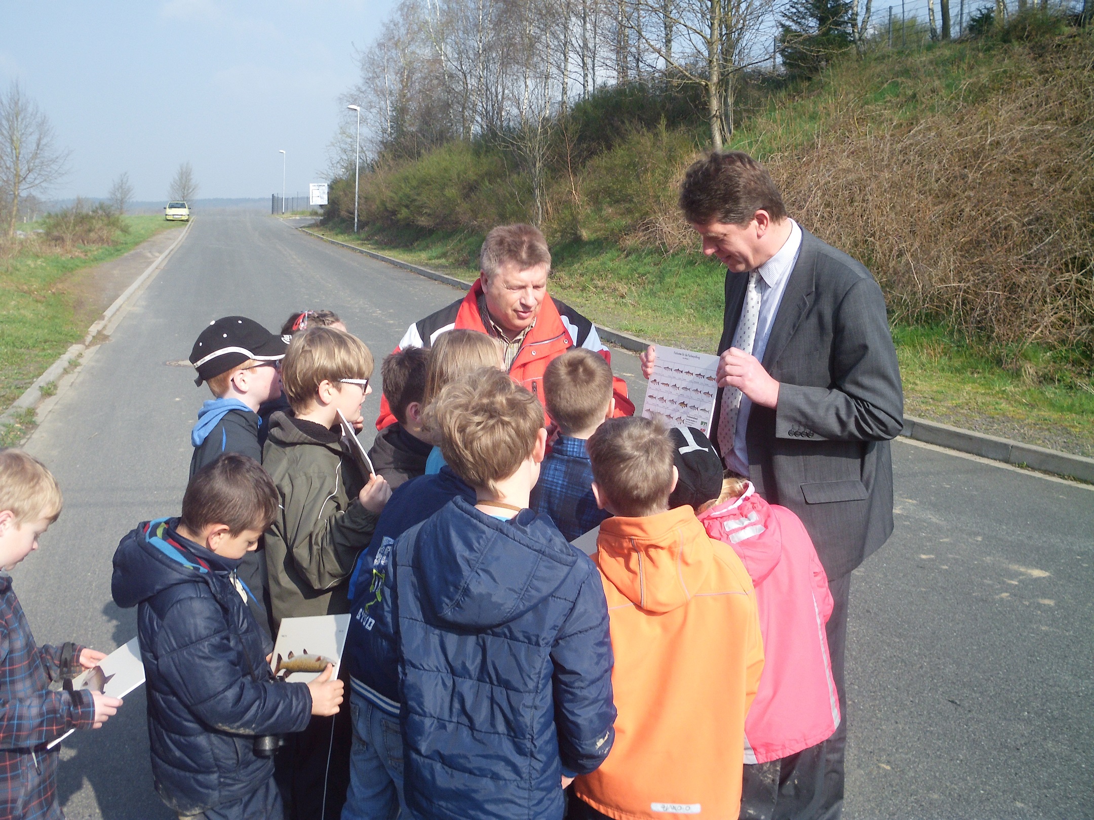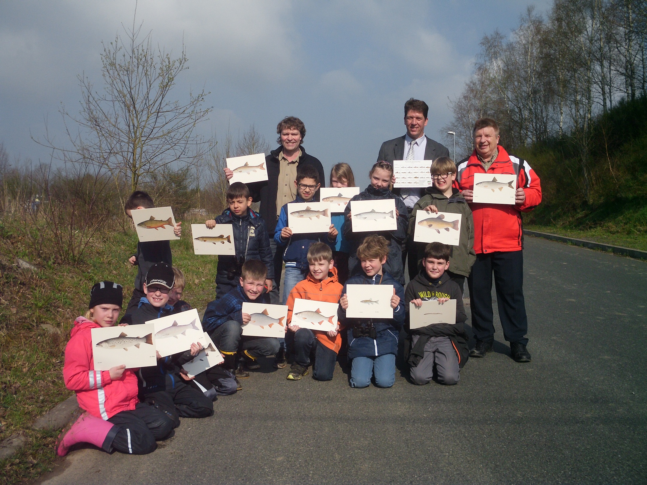 Herr Sieler ist wie Herr Sauermann Mitglied im Fischerreiverband. Zusammen erklären sie uns, welche Fische an unseren Bächen vorkommen.