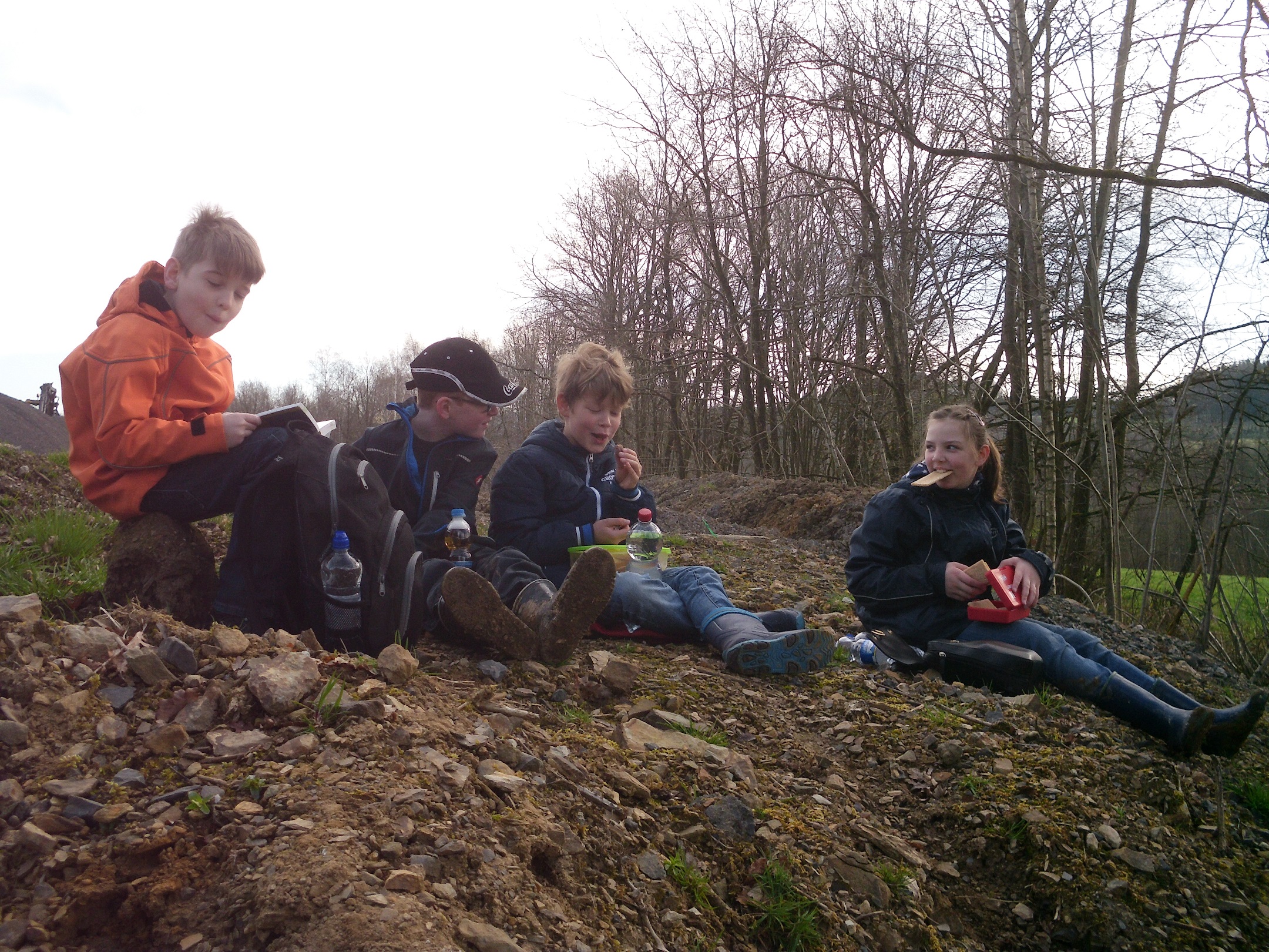 Natürlich werden alle Insekten die uns begegnen ausgiebig untersucht! Neben Spinnen, Ameisen, Asseln, Käfern, Fliegen, Tausendfüßlern wurden aber auch Schnecken und Regenwürmer unter die Lupe genommen. Ein Kaninchenbau wurde entdeckt!