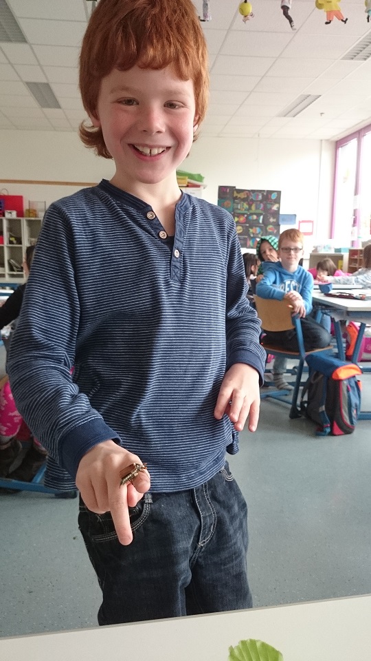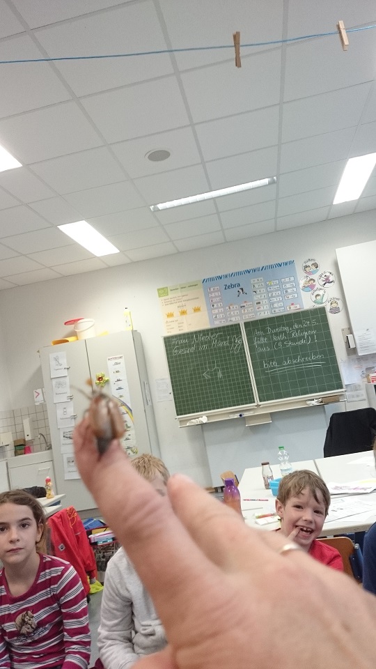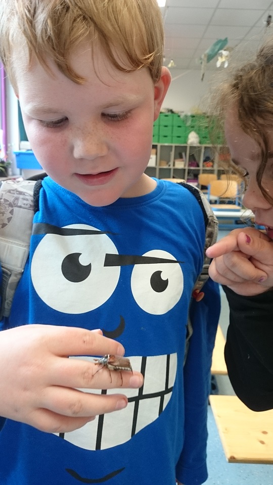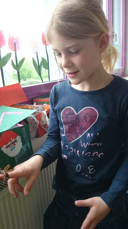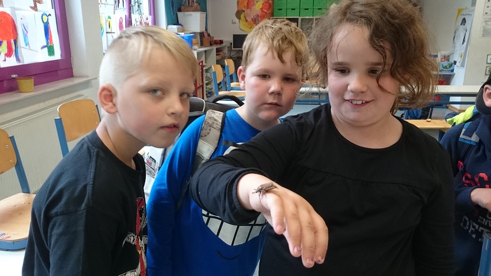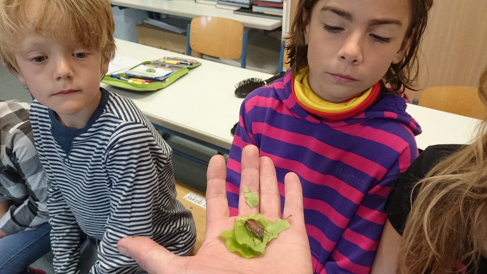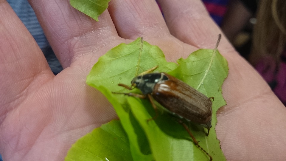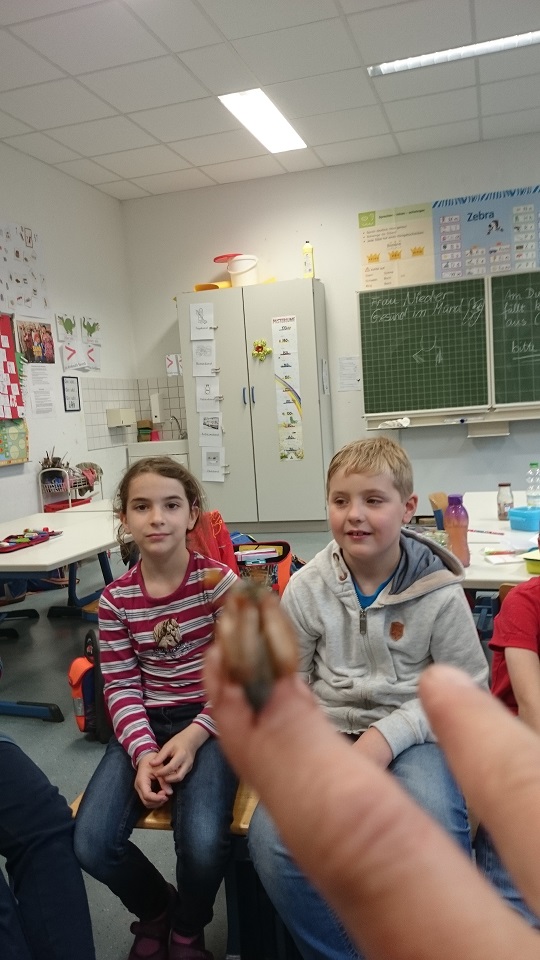 Die Kinder der Klasse 2a konnten einen Maikäfer hautnah erleben.