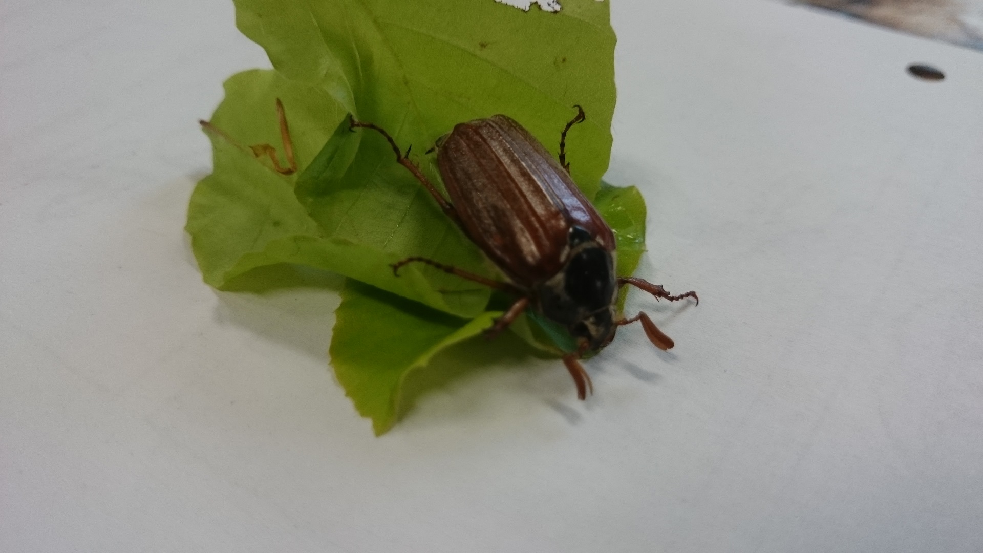Wenn wir richtig geguckt haben, dann ist dieser Maikäfer ein Weibchen. Es war toll zu beobachten, wie der Käfer seine Flügel aufgepumpt hat und durch die Klasse geflogen ist.