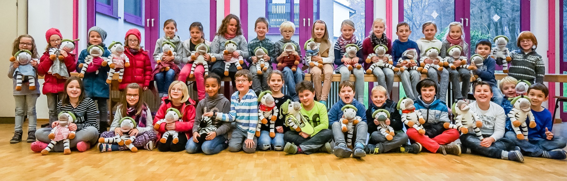 Das Zebra Franz ist bei vielen Kindern Zuhause. Im Forum wurde ein schönes Gruppenfoto gemacht!